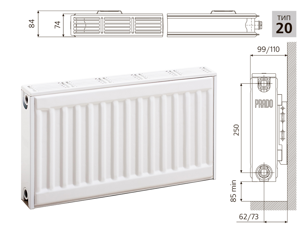 Cтальной панельный радиатор PRADO Classic 20х300х2800