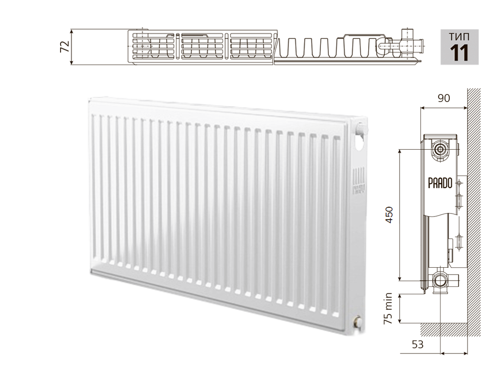 Cтальной панельный радиатор PRADO Universal 11х500х600
